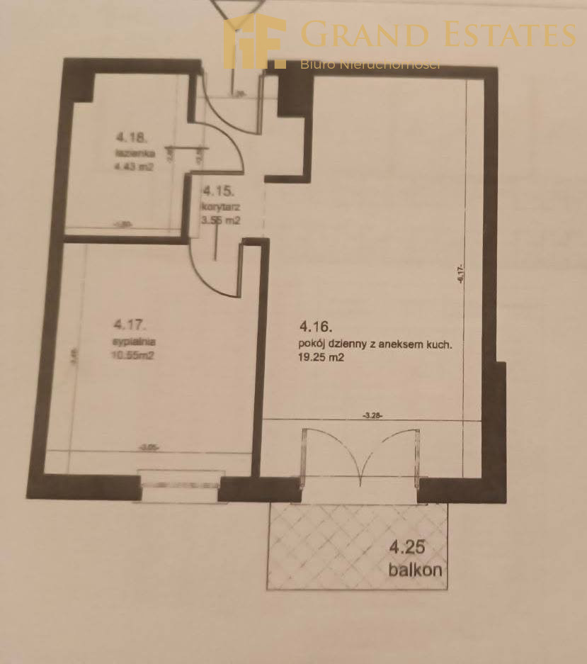 • salon z aneksem kuchennym i wyjściem na balkon