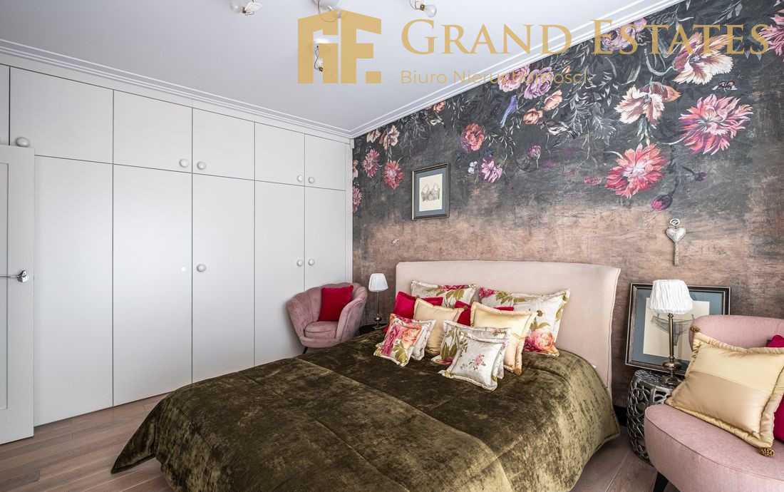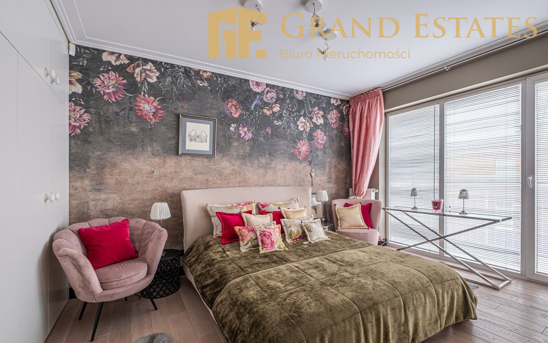 - Sypialnia Master: Odseparowana od reszty mieszkania prywatna strefa z dużym łóżkiem małżeńskim, własnym tarasem oraz luksusowym pokoju kąpielowym (wanna + prysznic).