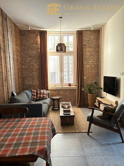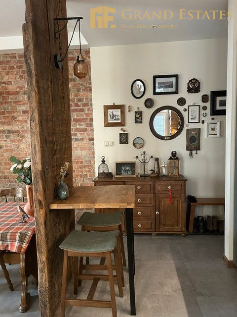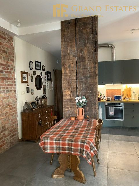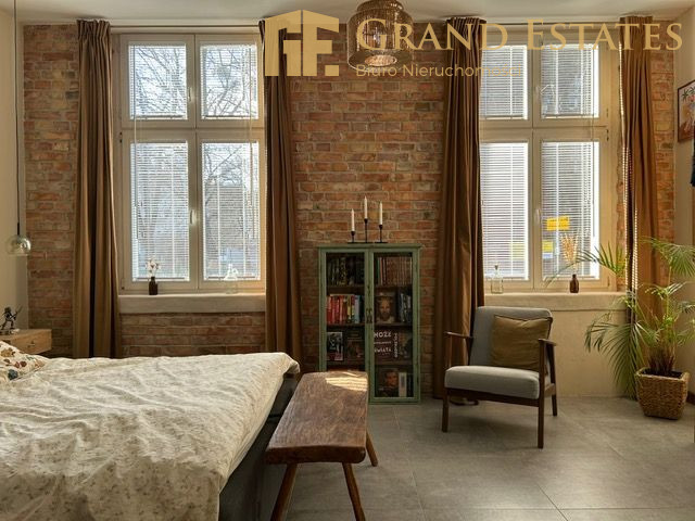 - wysokie sufity, duże okna, drewniana stolarka oraz odsłonięta cegła i unikalne elementy konstrukcyjne